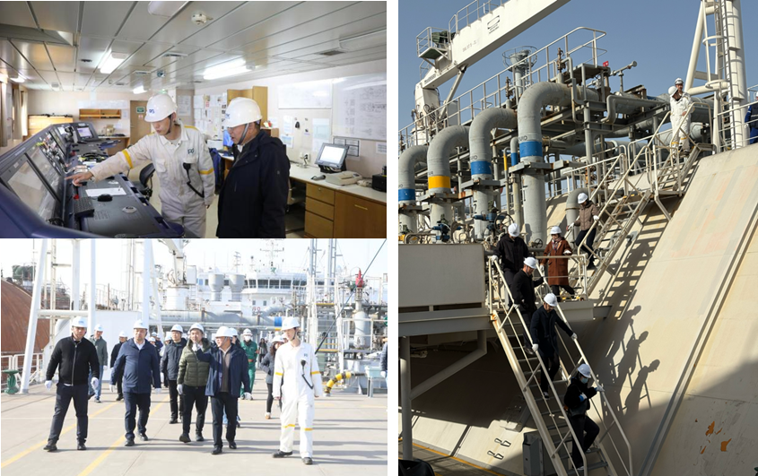 11月28日,公司組織干部員工到公司自有LNG運(yùn)輸船“山東瑞博”輪參觀調(diào)研,公司黨委書記、董事長李茂忠參加活動。