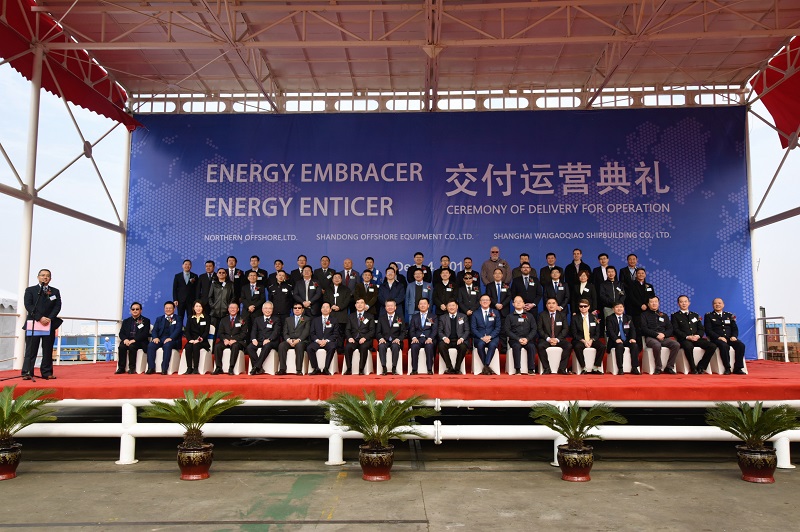 12月4日,公司旗下海工裝備兩座高性能自升式鉆井平臺Energy Embracer與Energy Enticer在上海外高橋造船有限公司順利交付運營,兩座平臺將前往卡塔爾北部海域,為卡塔爾國家石油公司提供海上油氣鉆井服務(wù)。山東省工業(yè)和信息化廳副廳長靖士寬,上海外高橋造船有限公司董事長王琦,集團公司黨委副書記、總經(jīng)理趙顯福出席儀式并致辭,集團公司副總經(jīng)理、公司黨委書記、董事長于冰,公司黨委副書記、首席執(zhí)行官粟斌,公司首席技術(shù)官孫遠慧和公司副總經(jīng)理李亞東參加儀式。