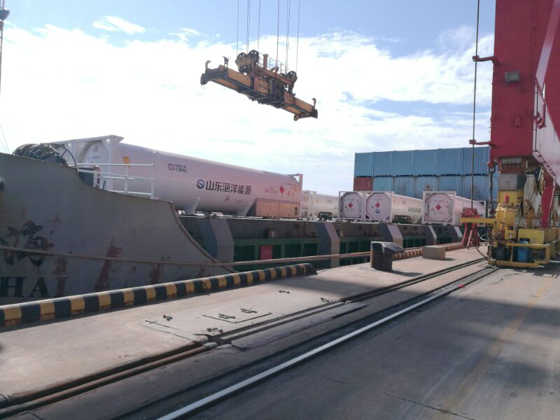 9月7日8時(shí),山東海洋能源有限公司(以下簡(jiǎn)稱“公司”)10臺(tái)LNG罐式集裝箱在日照港石臼港區(qū)集裝箱碼頭順利卸泊。這是日照港首次接卸LNG罐式集裝箱,也是目前我省最大規(guī)模的LNG罐式集裝箱接卸,是繼今年4月份在威海港首次嘗試LNG罐式集裝箱海陸聯(lián)運(yùn)的又一大突破,實(shí)現(xiàn)了LNG罐式集裝箱多式聯(lián)運(yùn)的常態(tài)化商業(yè)運(yùn)營(yíng)。