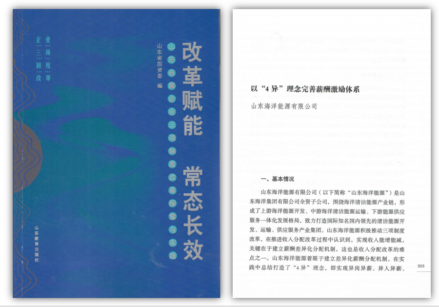 近日,省國資委征集遴選省屬企業(yè)三項(xiàng)制度改革典型經(jīng)驗(yàn)做法,編寫出版了《改革賦能常態(tài)長效——山東省屬企業(yè)三項(xiàng)制度改革探索與實(shí)踐》。公司提報(bào)的三項(xiàng)制度改革案例——《以“4異”理念完善薪酬激勵(lì)體系》成功入選。